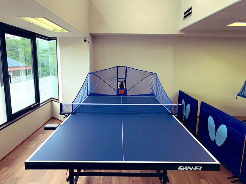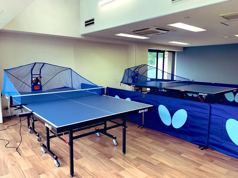 卓球台2台 (当店は、2人打ちには狭いスペースとなっております。余裕をもって2人打ちされたい場合は2台同時予約をオススメします) 卓球マシン2台(ニッタク製「ロボコーチRX」x1、VICTAS「PONGBOT]オムニプロ×1)) 冷暖房完備、レンタルラケット、契約ロッカー、更衣室有 |