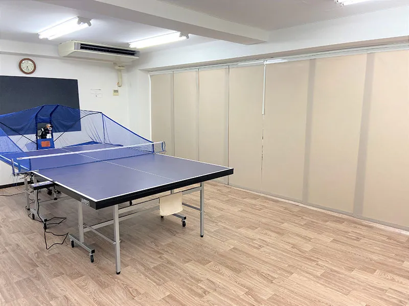 卓球台\4台 卓球マシン4台(ニッタク製「ロボコーチRX」3台、PONGBOT「ハロプロ」1台) 冷暖房完備、Wi-Fi利用可、レンタルラケット、契約シューズロッカー、更衣室有 |