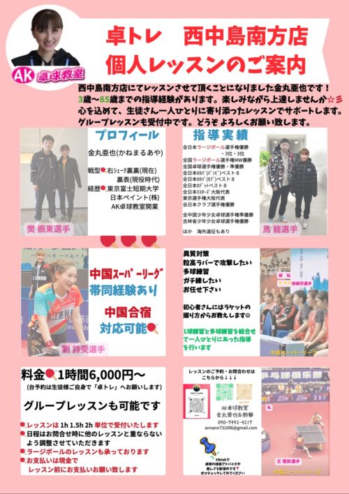★金丸亜也コーチの個人レッスン(グループも可)